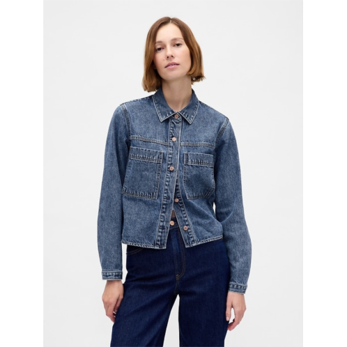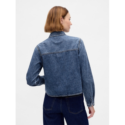 - Authentic non-stretch denim cropped shirt jacket.