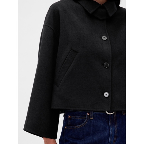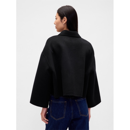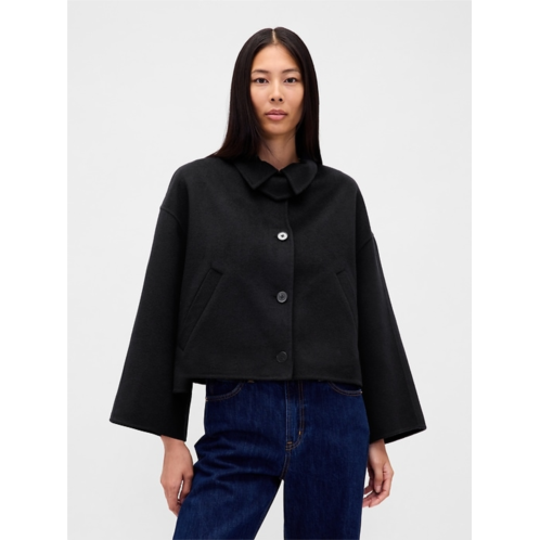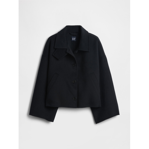 - Soft, double-faced wool-blend oversized swing jacket in a slightly cropped length.