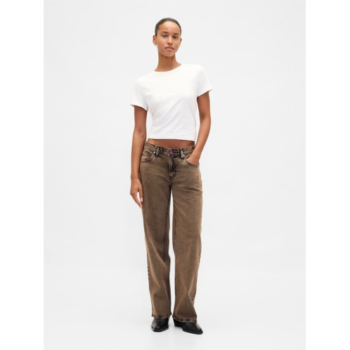 -Fit:A full-length loose jean that's fitted on the waist & relaxed all the way down.