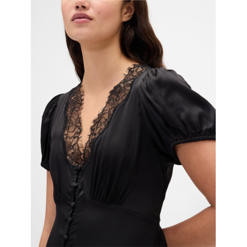 [US] Gap Satin Lace-Trim V-Neck Mini Dress