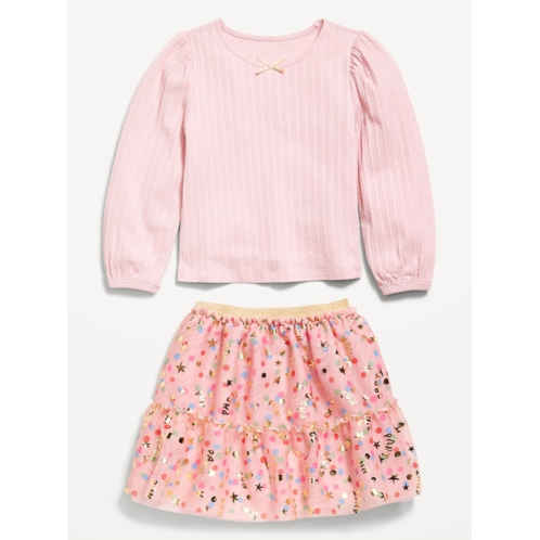 [US] OldNavy Long-Sleeve Pointelle Top and Tutu Skirt Set for Toddler Girls