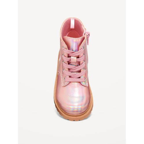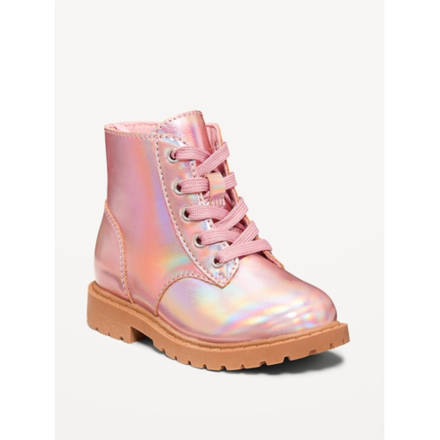 [US] OldNavy Shiny Faux-Leather Side-Zip Combat Boots for Toddler Girls