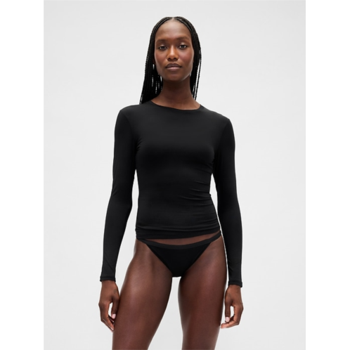 - Soft, ultra-stretchy nylon-blend base layer T-shirt.