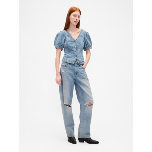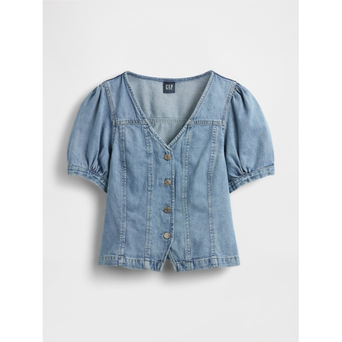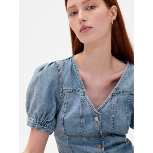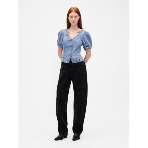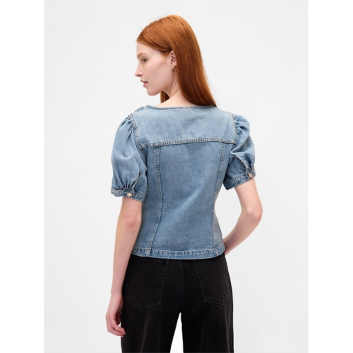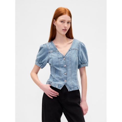 [US] Gap Denim Puff-Sleeve Seamed Top