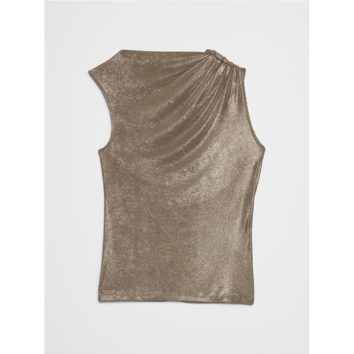 [US] bananarepublic Foiled Ribbed Draped-Shoulder Top