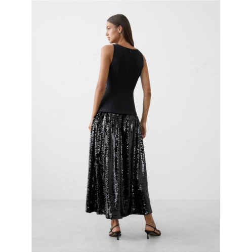 [US] bananarepublic Sequin Drop-Waist Maxi Fit-and-Flare Dress