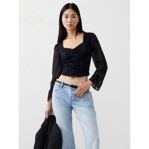 Cropped Shirred Sweetheart-Neck Top