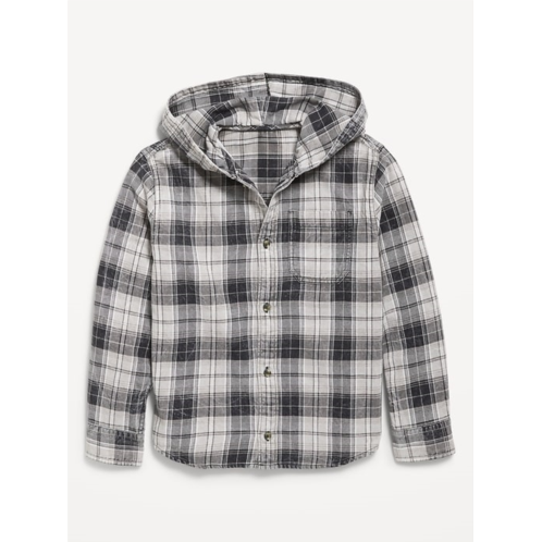 [US] OldNavy Long-Sleeve Plaid Washed Flannel Hooded Shirt for Boys