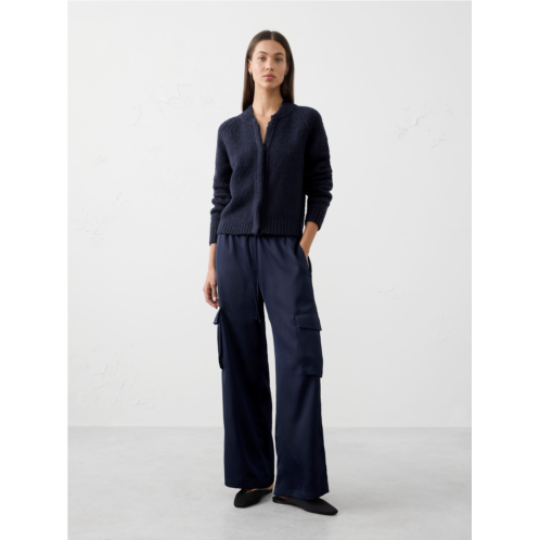 [US] bananarepublic Wide-Leg Mid-Rise Satin Pull-On Cargo Pant