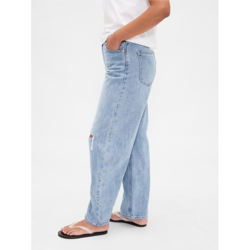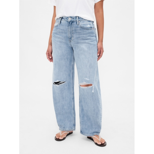 - Fit: A full-length barrel jean that's fitted at the waist with a relaxed leg and tapered ankle.