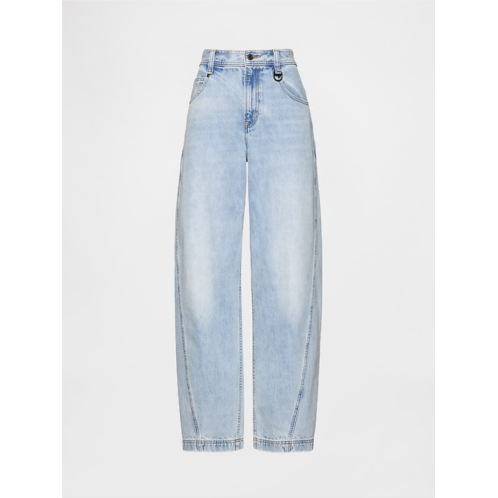 - Fit: A full-length barrel jean that's fitted at the waist with a relaxed leg and tapered ankle.
