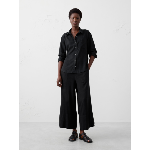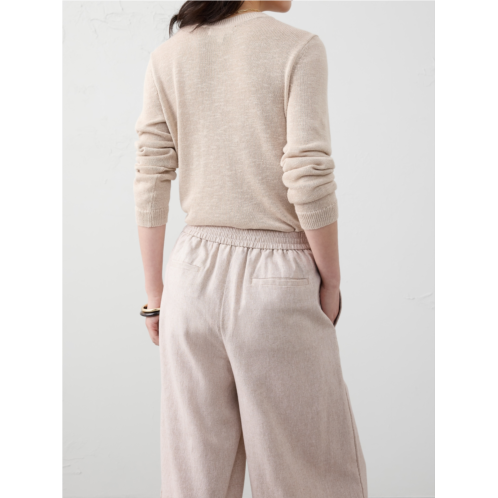 [US] bananarepublic Wide-Leg High-Rise Linen-Blend Cropped Pull-On Pant