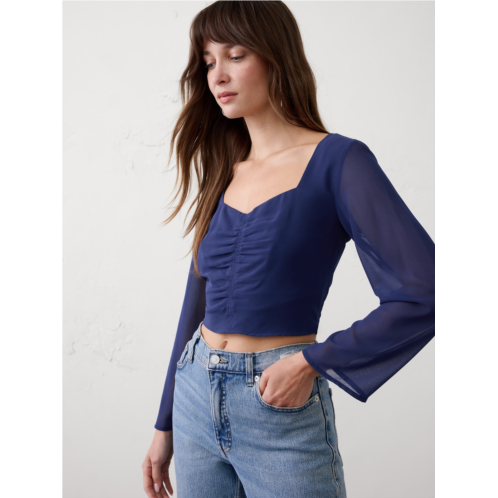 [US] bananarepublic Cropped Shirred Sweetheart-Neck Top