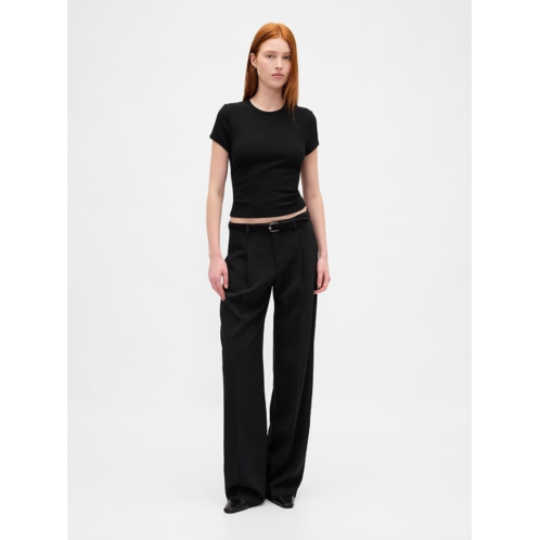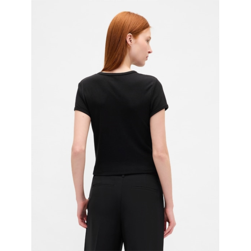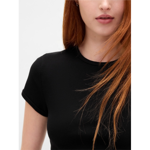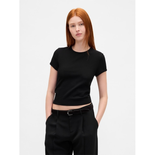 - Soft, stretch waffle-knit cropped baby tee.