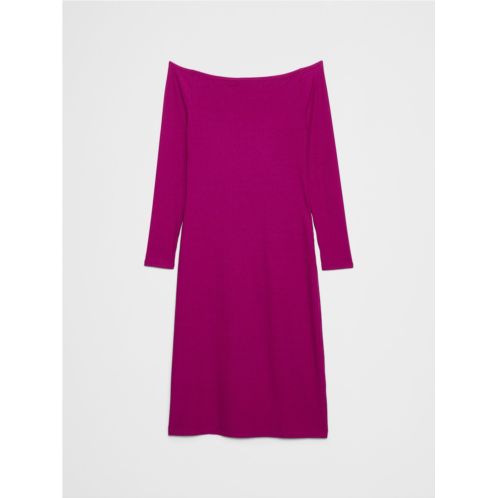 Off-The Shoulder Ribbed Midi Dress