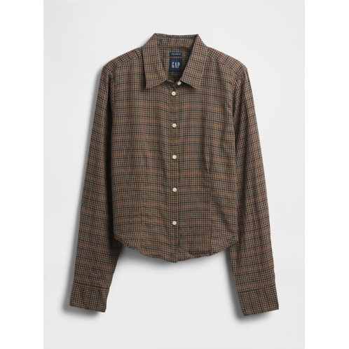 - Soft, stretch twill flannel fitted crop shirt.