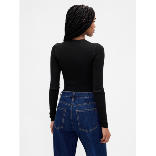 - Sheer, ribbed acrylic-nylon blend sweater bodysuit.