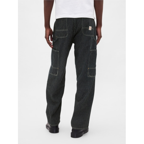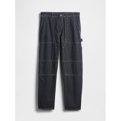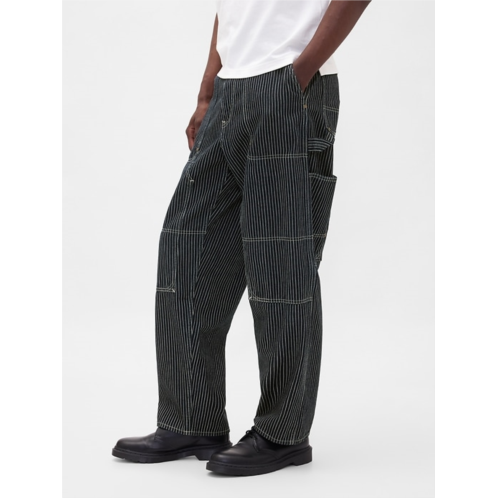 -Look:A baggy carpenter jean in a dark navy wash with allover stripes.