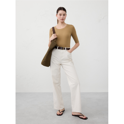 [US] bananarepublic Ribbed Elbow-Sleeve T-Shirt