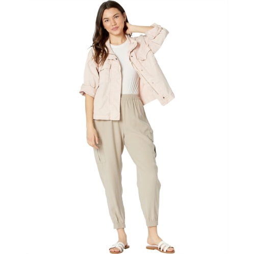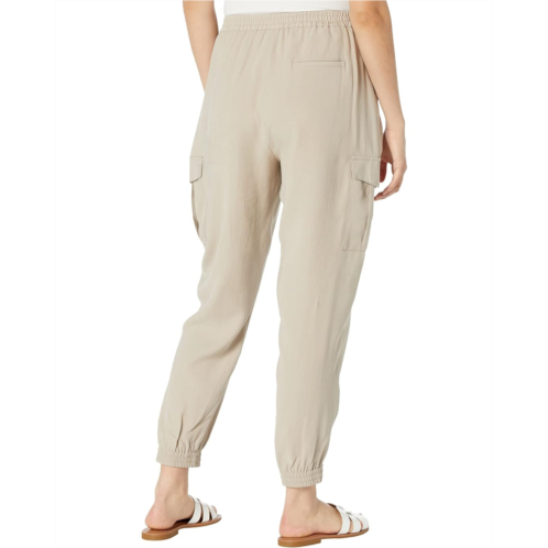 Run your errands in comfort wearing the BCBGMAXAZRIA Twill Joggers. These lightweight stretch jogger pants are crafted with an elasticized waistband, side pockets, back left welt pocket, flap-over cargo pockets at the outer thighs and finished with elasticized hems to give you freedom when styling.