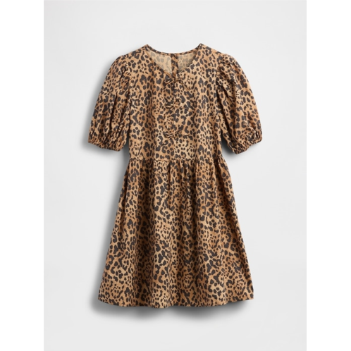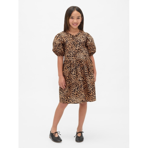 [US] Gap Kids Poplin Puff-Sleeve Leopard Dress