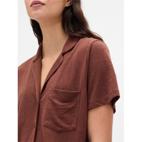 - Soft linen-blend relaxed pajama shirt.