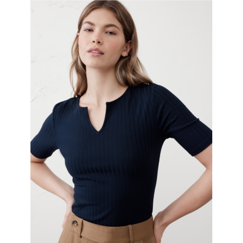 [US] bananarepublic Wide Ribbed Split-Neck Top