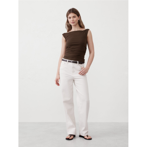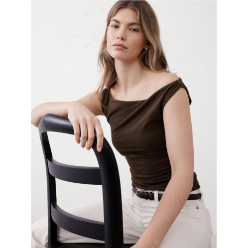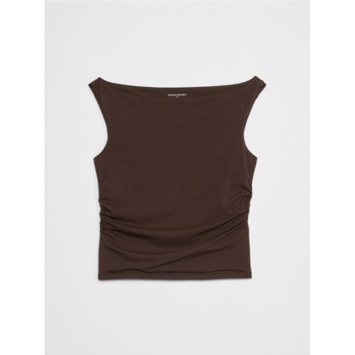 [US] bananarepublic Soft Stretch Shirred-Waist Boatneck Top