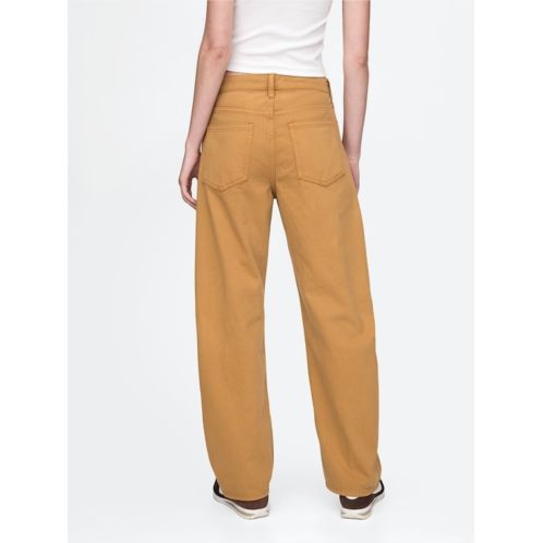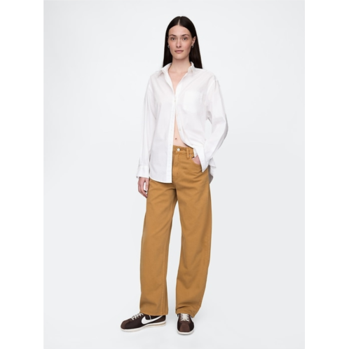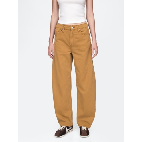 - .Fit:A full-length barrel jean that's fitted at the waist with a relaxed leg and tapered ankle.