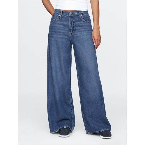 Look:A five-pocket baggy jean in a medium indigo wash.