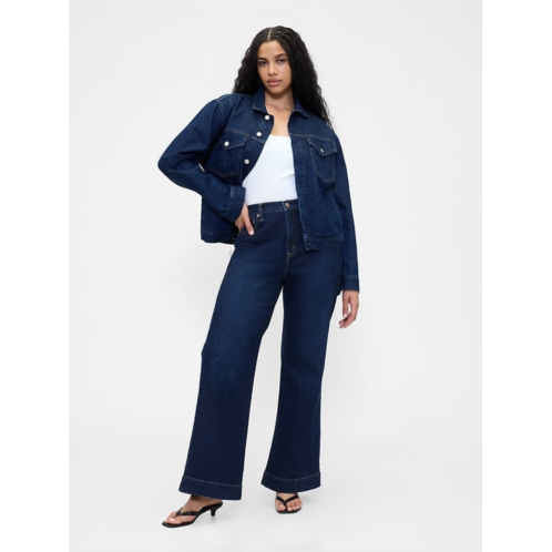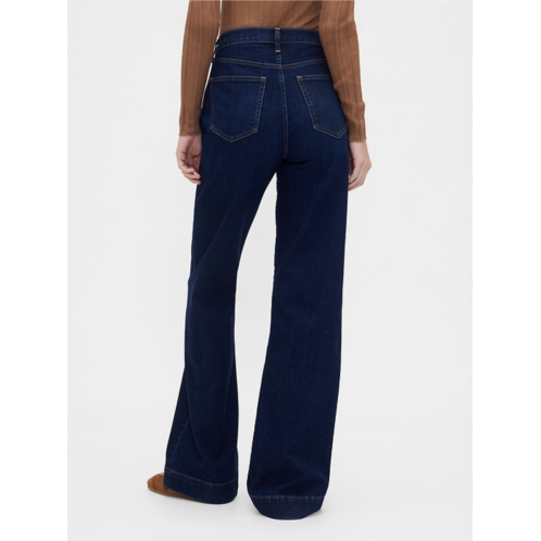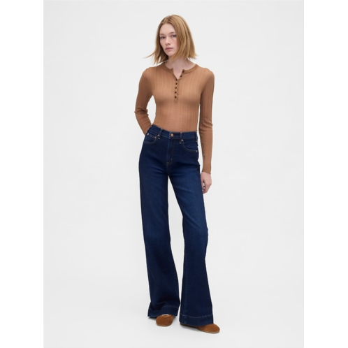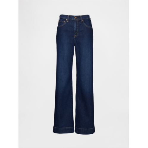 - Fit: Fits close at the waist & hip with slight ease through the thigh & a relaxed flared leg.