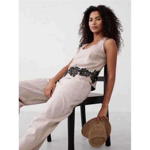 [US] bananarepublic Linen-Blend Embroidered Scoop-Neck Top