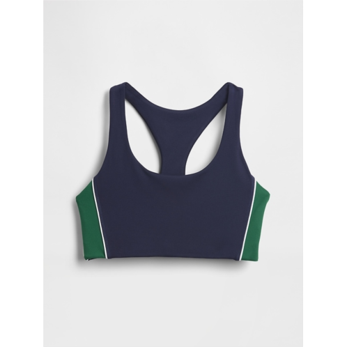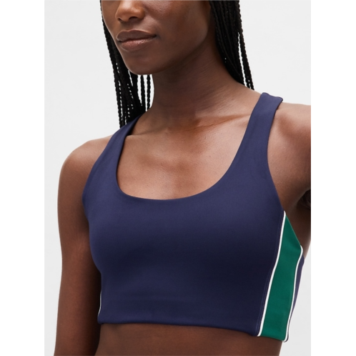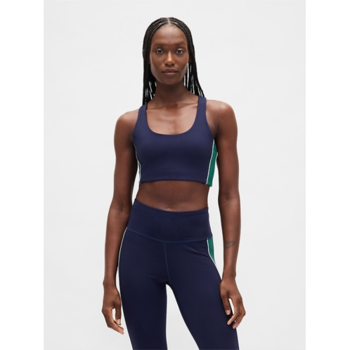 - This sports bra is made with 79% recycled polyester. Compared to virgin materials, using recycled materials helps to reduce resource use and waste.