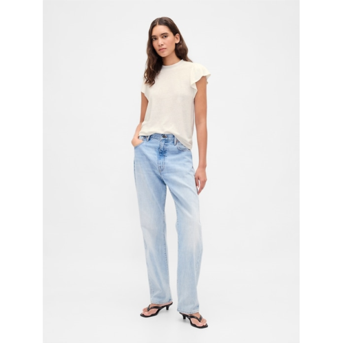 [US] Gap Linen-Blend Flutter-Sleeve T-Shirt