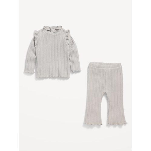 [US] OldNavy Cozy Long-Sleeve Ribbed Ruffle-Trim Top and Pants Set for Baby