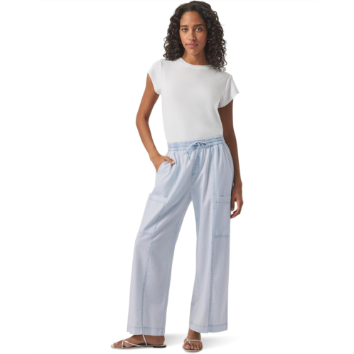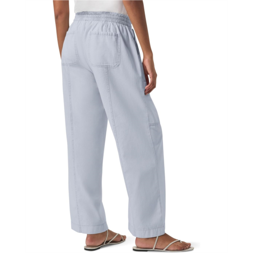 The Splendid Indigo Stripe Pants are designed for both style and convenience. They feature an elastic waistband with a drawstring tie for a customizable fit. Practicality shines through with front slash pockets, two patch pockets on the leg panel, and two additional back patch pockets. The vertical indigo stripe detailing throughout adds a touch of sophistication.