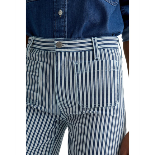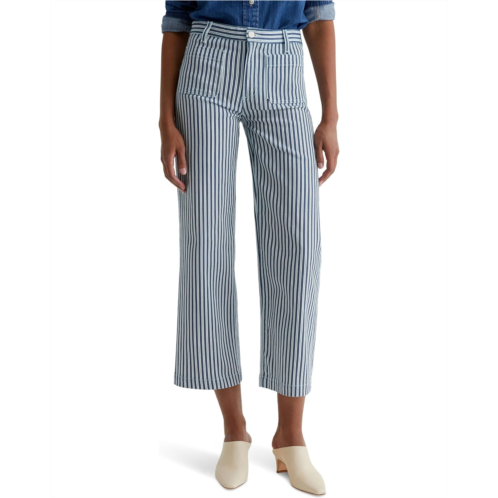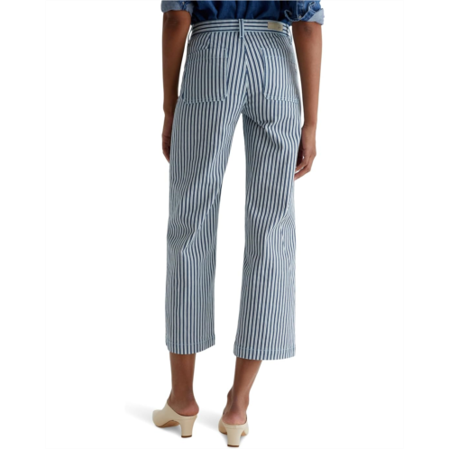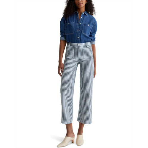 The AG Jeans Kassie Mid-Rise Wide Leg Crop in Nordic Stripe Indigo Multi is a flattering mid waisted wide leg jean with a seasonal ankle length and slight flare at the bottom.