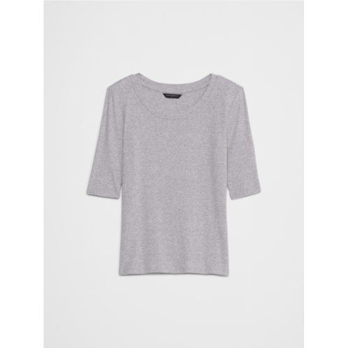 Ribbed Elbow-Sleeve T-Shirt