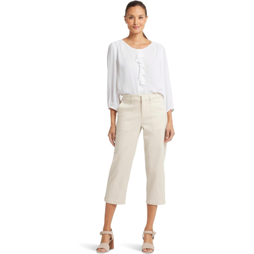 Complete your look in the effortless style of the NYDJ Petite Utility Pants featuring a a relaxed straight leg silhouette with cropped hem. Made with Lift Tuck Technology to flatten in the front and flatter curves in the back, these utility pants are rendered in soft stretch twill jersey with a high rise style complementing the oversized front pockets with angled openings, finished with back patch pockets.