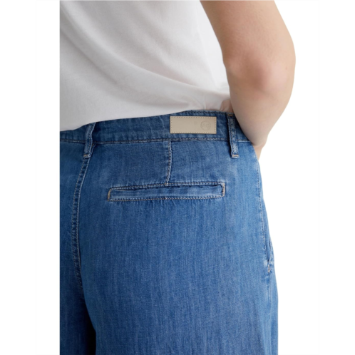 Designed with a high-rise and ultra-wide leg silhouette, the AG Jeans Melinda High-Rise Ultra Wide Palazzo Jeans in Catalina come in a lightweight, flowy chambray denim. These wide-leg jeans are finished with a zip-fly, buttoned closure, and belt loops. This seasonal fit is finished with front pleats, two front trouser pockets, and a full-length inseam.