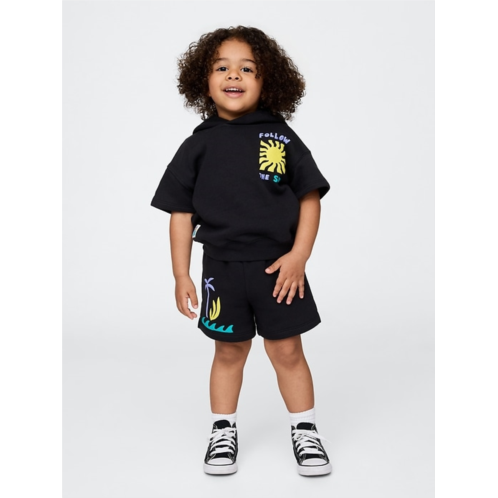 - Soft cotton-blend fleece hoodie and pull-on shorts outfit set.