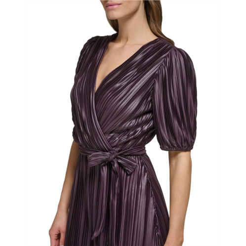 - Embrace the combination of edgy and elegant style wearing the DKNY Short Balloon Sleeve Coated Dress. Graced with unique textured details throughout, this mini dress features a surplice neckline with elbow-length puff sleeves.
