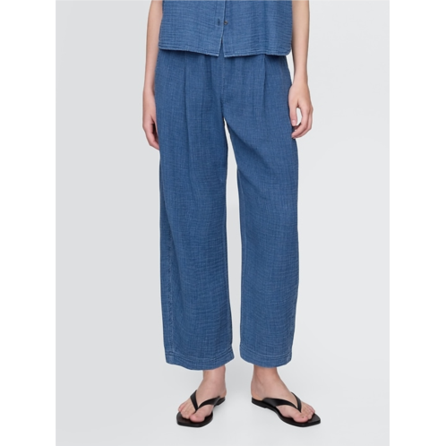 - Soft cotton gauze denim easy barrel pants.