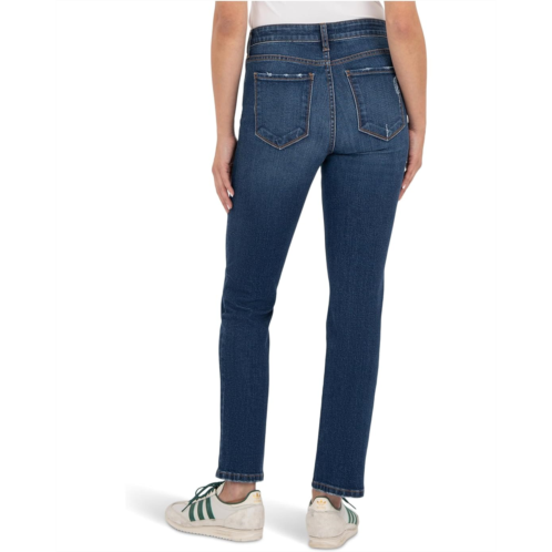 The KUT from the Kloth Reese High-rise Fab Ab Ankle Straight Regular Hem Jeans is a classic jean that can take you anywhere. It is a signature straight leg with a better-than-vintage aesthetic, an ankle length, and a modern edge. The high-rise stretchable jeans features features belt loops, a zip-fly with button closure, and a five-pocket design.