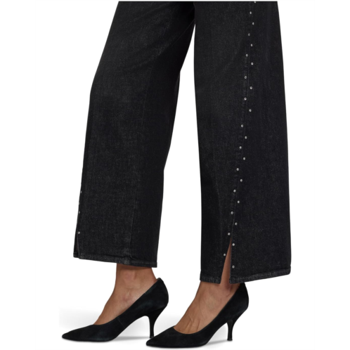 The NYDJ Petite Teresa Wide Leg Jeans in French Nightfall cinch your waist, enhancing your natural silhouette, while their wide legs add instant polish to everything you pair them with. This Teresa style has a glam finish with rhinestones trimming the front legs and deep front slits. It is made with Lift Tuck Technology to flatten in the front and flatter curves in the back.