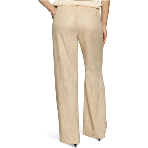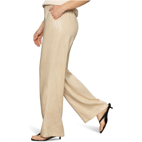Shimmer & stroll in coastal cool styling Sanctuary Coastal Pants. Designed with a relaxed, regular fit and flowy wide leg silhouette, these statement-makers feature eye-catching sequin stripe detailing that adds just the right touch of glam. The mid-rise, elasticized waist and pull-on design make for easy, fuss-free wear-perfect for beach walks, weekend brunches, or moonlit soirees. Crafted from non-stretch fabric for a structured feel, and finished with practical slant pockets, these pants are as functional as they are fabulous.