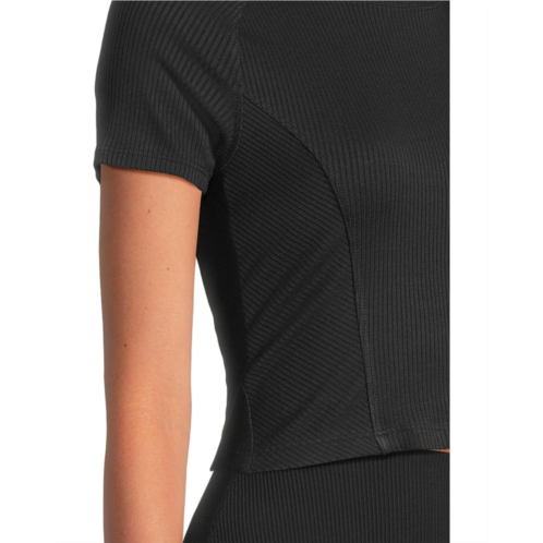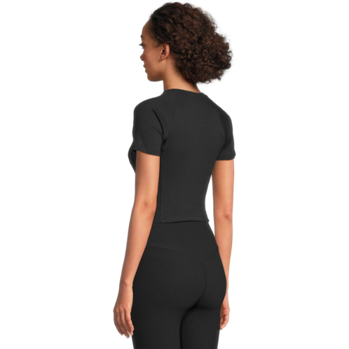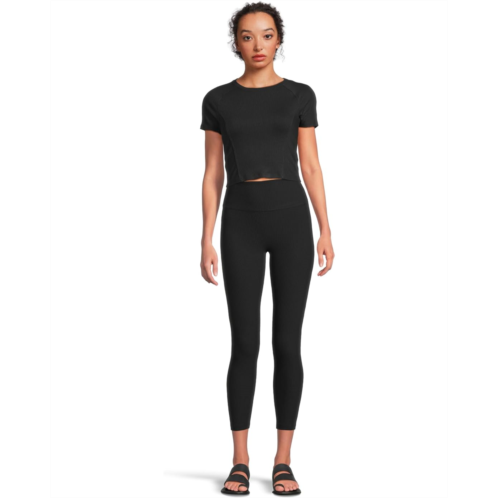 The Beyond Yoga Cropped length tee is a versatile wardrobe staple, perfect for creating outfits that transition effortlessly from workdays to weekends. Crafted from a soft, ribbed fabric, it gently molds to your body, enhancing and streamlining your silhouette for a comfortable, flattering fit. The design features directional rib panels for subtle texture, a high crew neck for a modern touch, and shaped raglan sleeves that add a stylish, tailored finish.