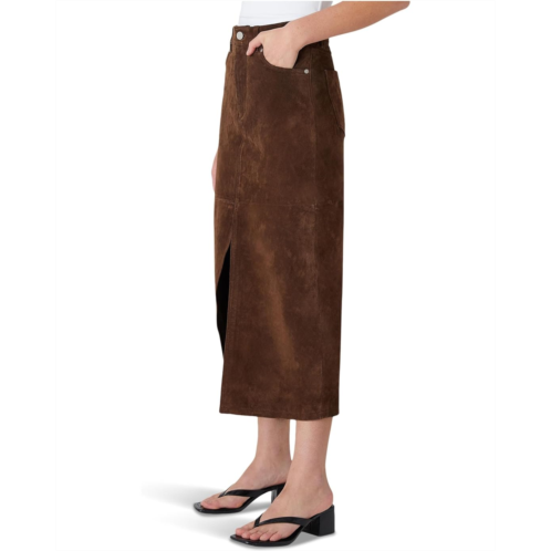 - Give a stylish update to your wardrobe with the Blank NYC Midi Skirt. This women's real suede five pocket midi skirt features a mid-rise waist, a zipper closure, and a midi-length silhouette with a high slit.