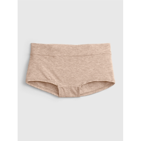 - Elasticized trim along leg openings.