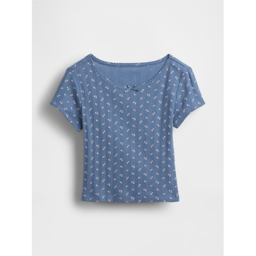 - Soft, ribbed cotton pointelle-knit T-shirt.